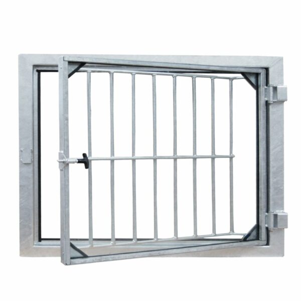 - Bågen består av varmförzinkad stålprofil, 6 mm enkelglas och galler på insidan.