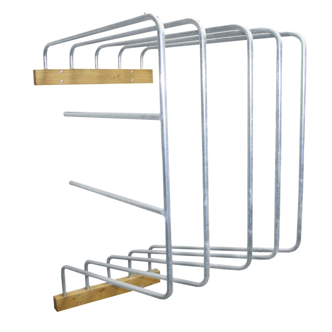 Set med svängbara bågar. Praktisk modell med plats för fem täcken. Laserade väggfästen inkl. skruv för montering på trävägg. BxDxH 550x800x1 100 mm.