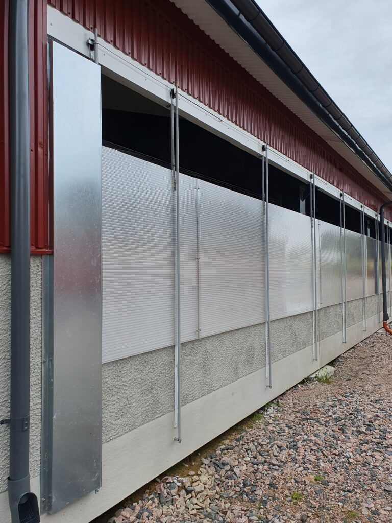 Vi erbjuder ett brett sortiment av både mjuka gardiner och luckor för isolerade och oisolerade stall.
