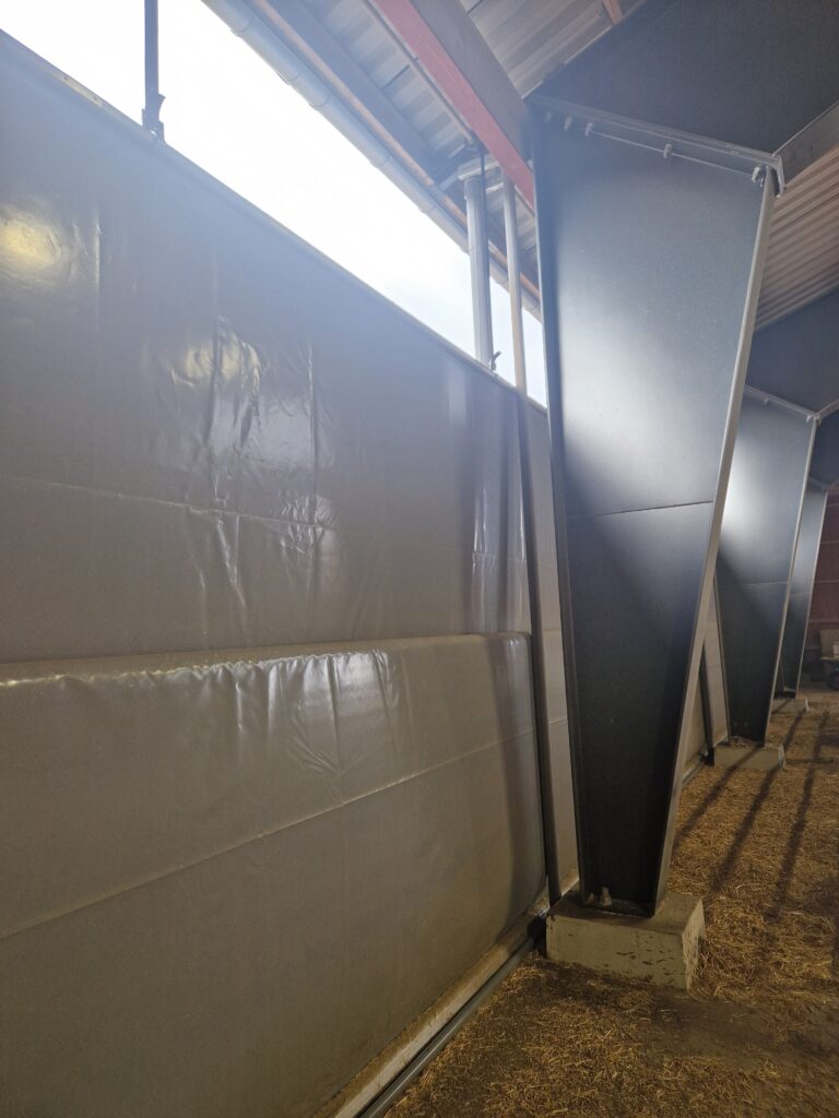 En gardin som rullas upp från botten för att ge luftintag vid golvnivå eller ovan vägg. Lämpar sig bra när det halmas med strömaskin eftersom gardinen sitter skyddad.