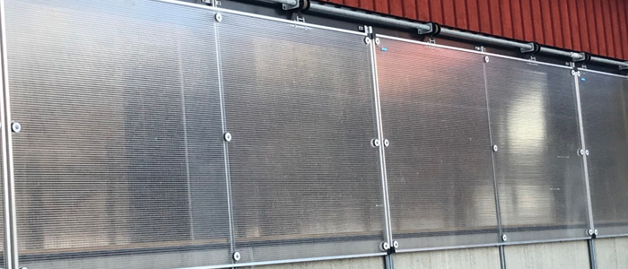 Ger en 100% tät gardin när den är stängd. Oisolerad men kan fästas tajt mot väggen så ingen vind tränger in. Insydd i gardinen är horisontella stålrör som ger vikt neråt och spänner gardiner, vilket också ger ett ökat vindmotstånd.