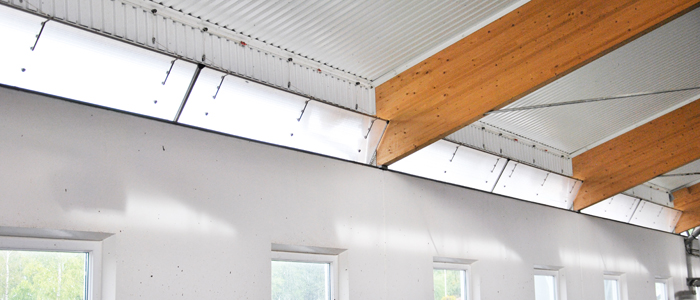 Reglerbar ljusklaff av kanalplast för montering ovan vägg, mellan stommarna. Platseffektiv ventilation som går att kombinera med fönster och portar. Används oftast i isolerade stall med betongväggar. Inåtgående öppning som manövreras med vinch.