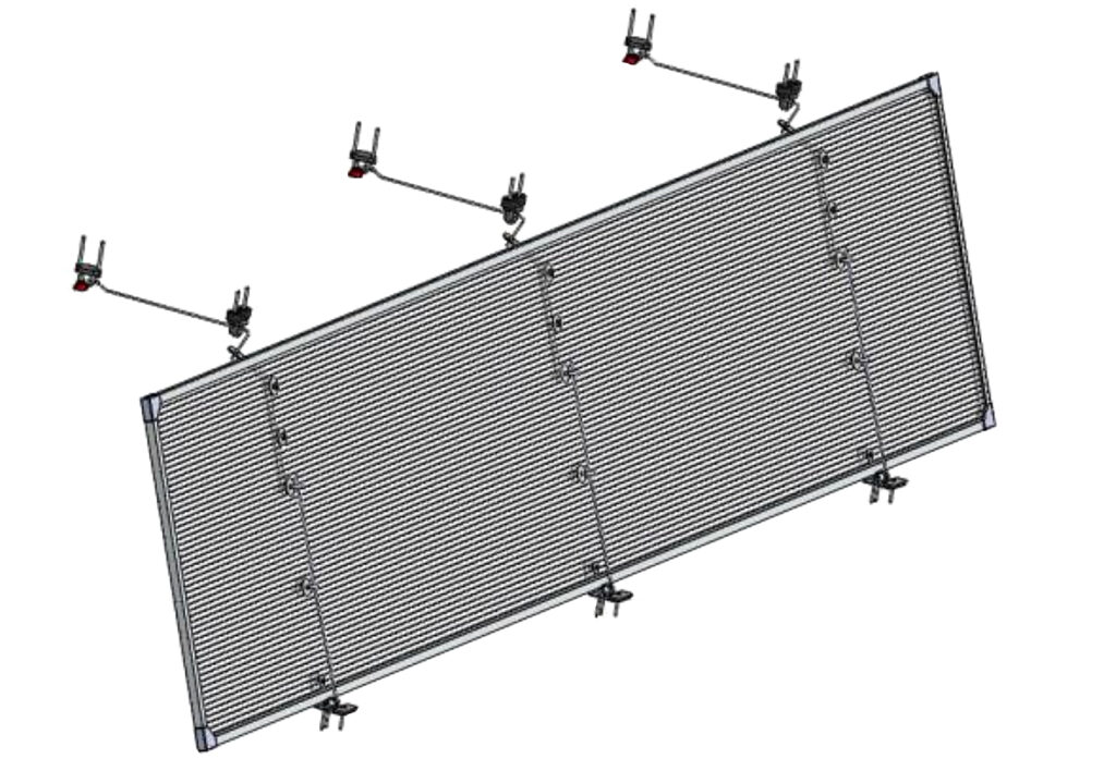 Flexibel sidogardin som kan rullas upp från nedkant samt rullas ned från ovankant. Systemet har två separata drivmotorer, en i ovankant och en på mitten som kan flyttas upp och ned längst styrskenor. Robust vädersäker konstruktion med drivaxlar i aluminium.