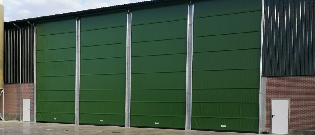 En stor och robust port som klarar öppningar upp till 16 meter i både bredd och höjd. Den är byggd för att stå emot stark vind, tack vare svetsade band som klarar 2,4 ton var och rullar i rostfria skenor. Porten fungerar utmärkt i tuffa miljöer med fukt och ammoniak, tack vare att viktiga delar är tillverkade i rostfritt stål.