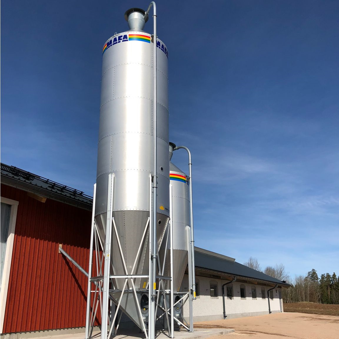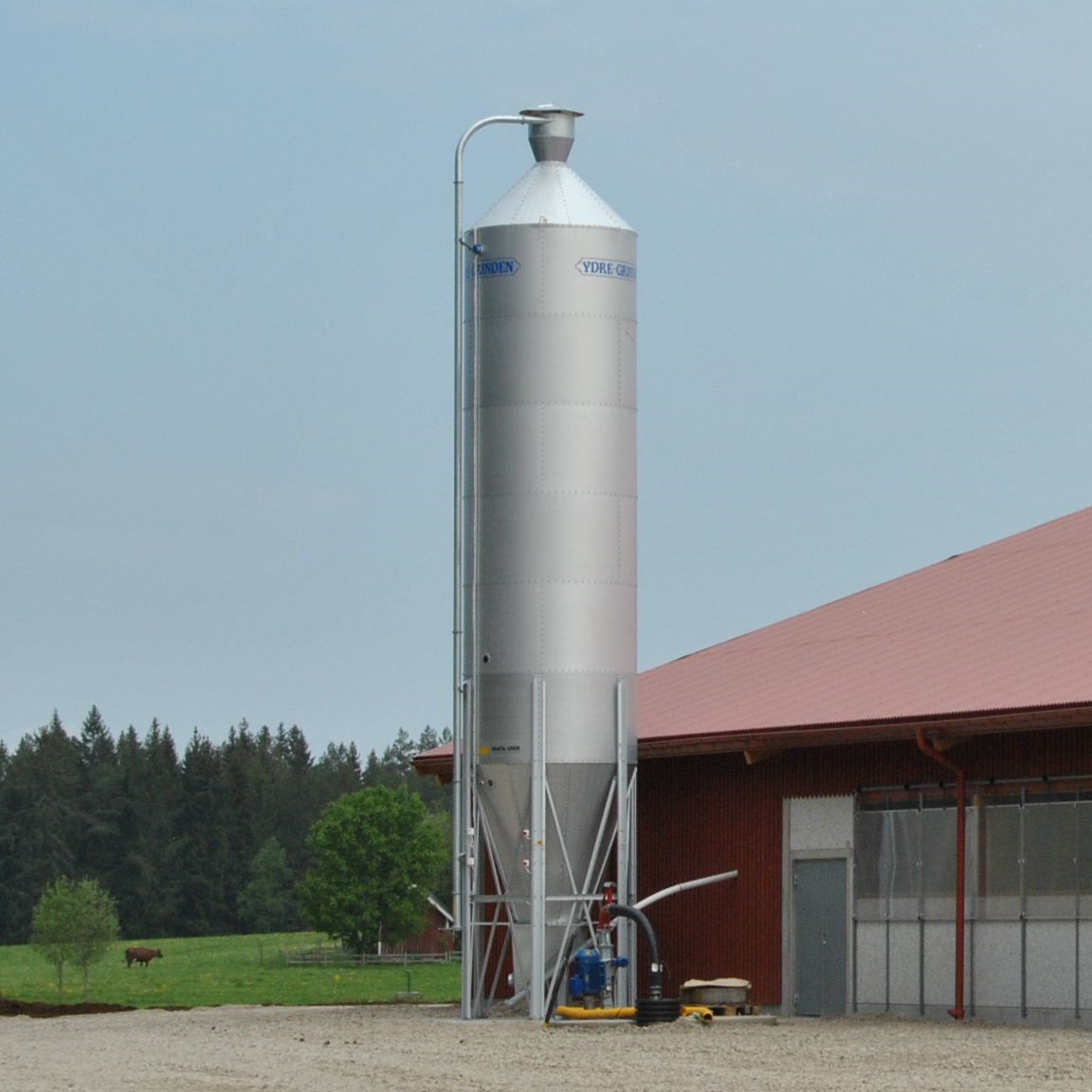 Stabil utomhussilo med enkel grundkonstruktion. 2,3 m diameter med sex siloben.